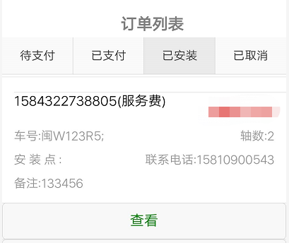 3、点击支付,输入密码,支付完成,在已支付及待安装列表中可查看。